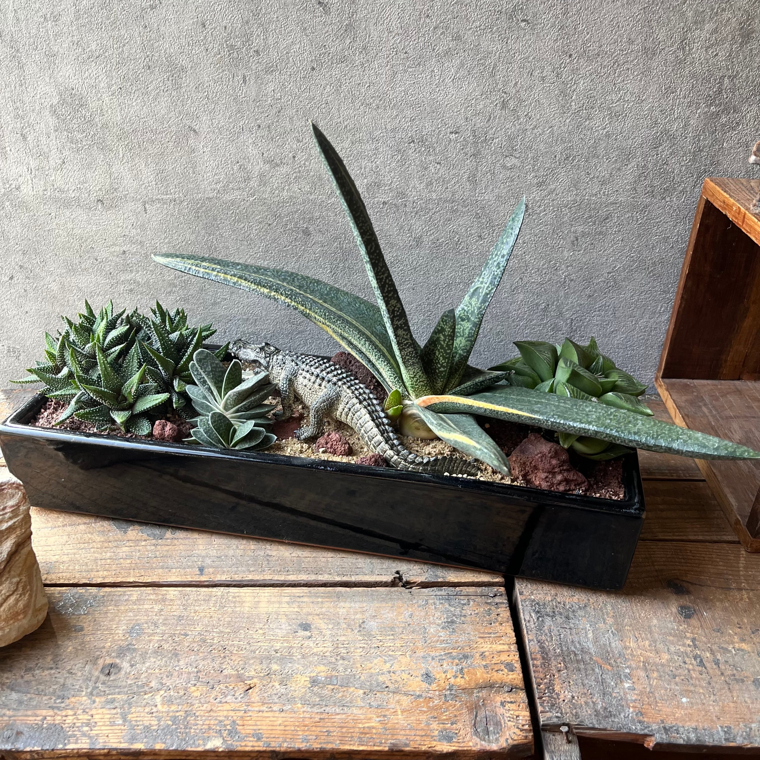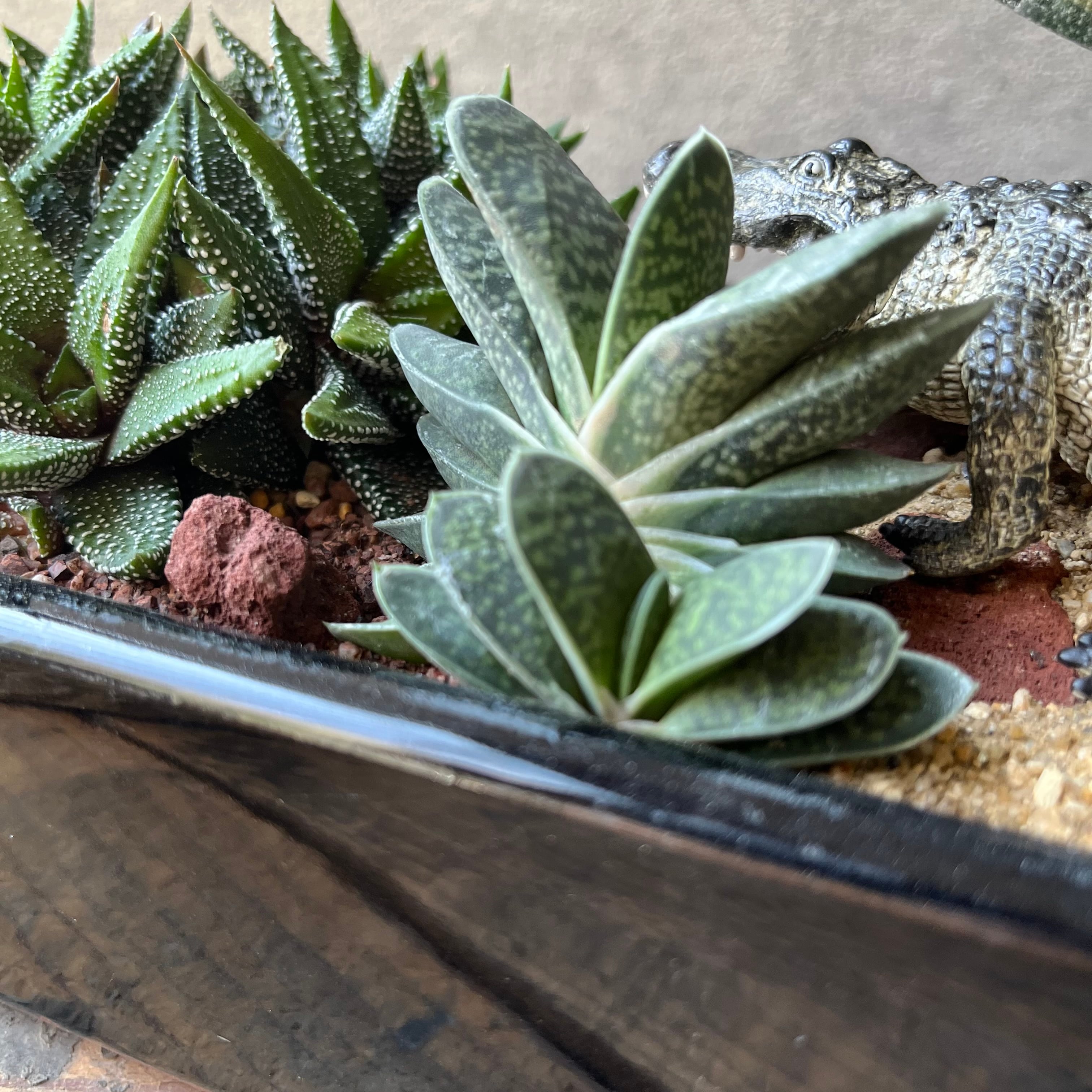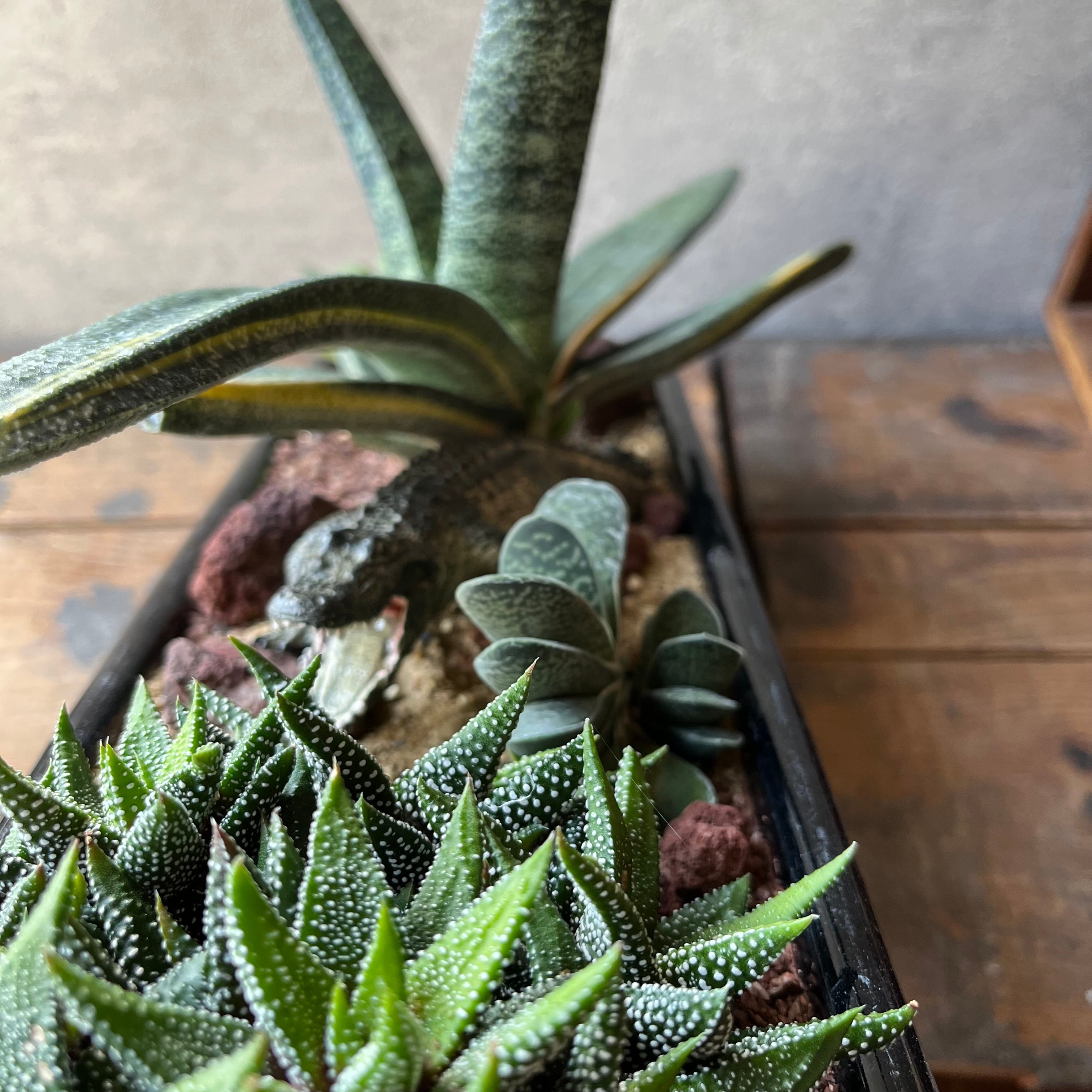 ハオルチアやガステリアで水辺のそうげんを表現しました