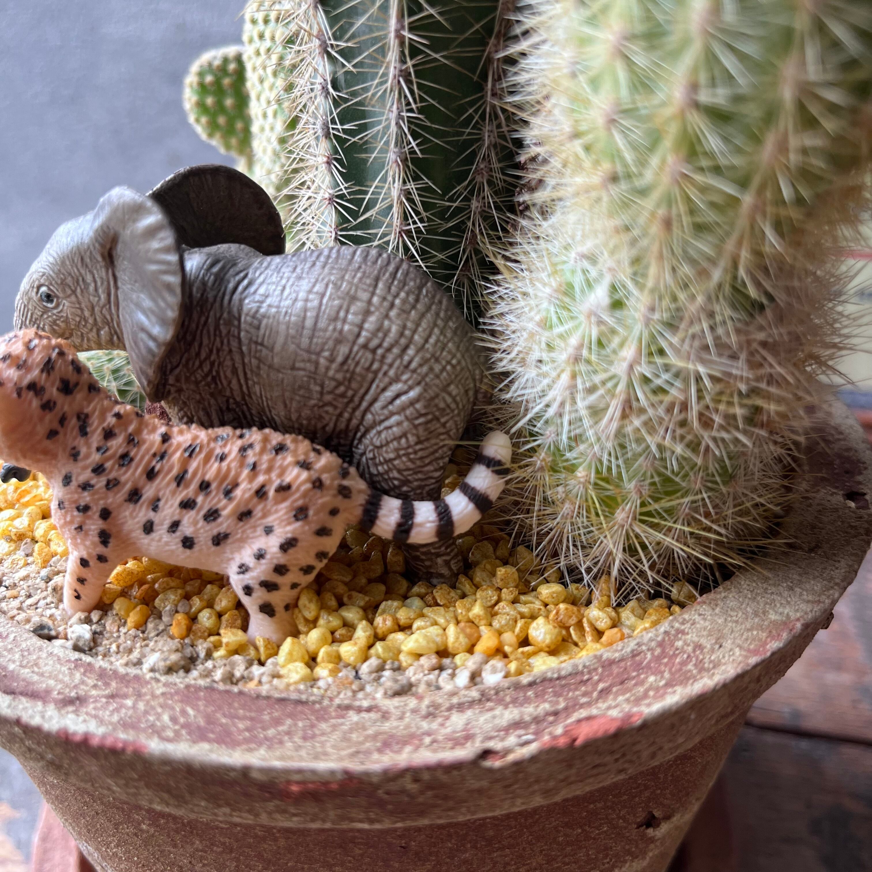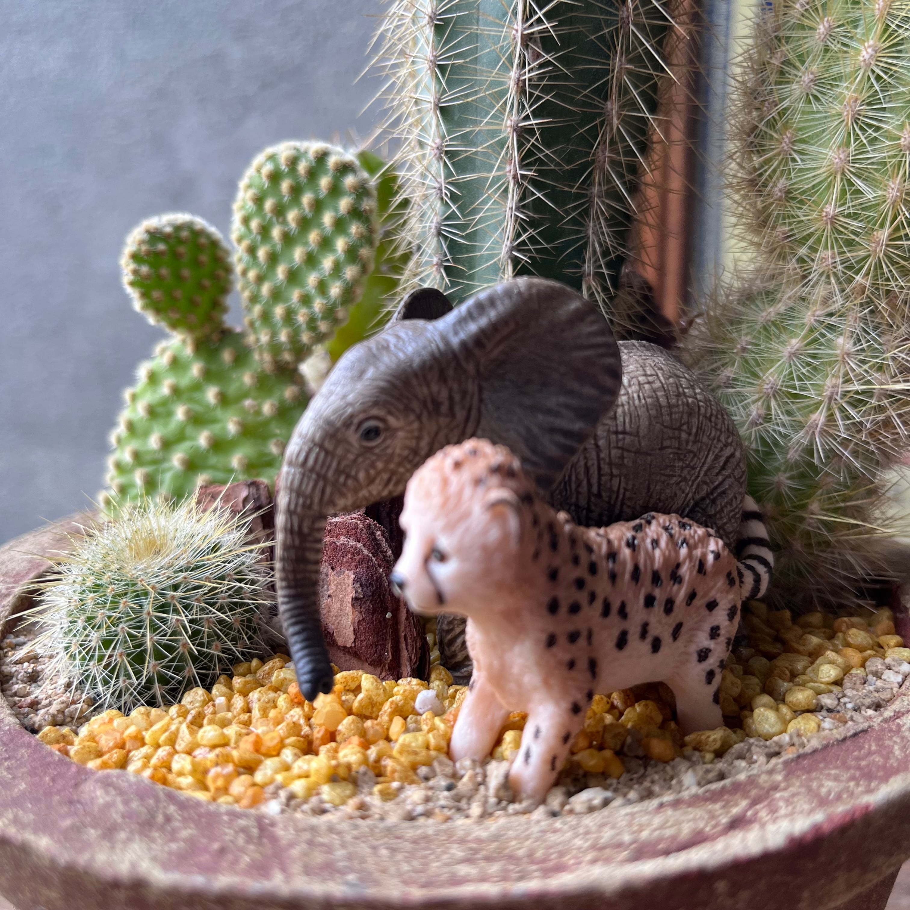 アフリカゾウとチーターの赤ちゃんコンビ