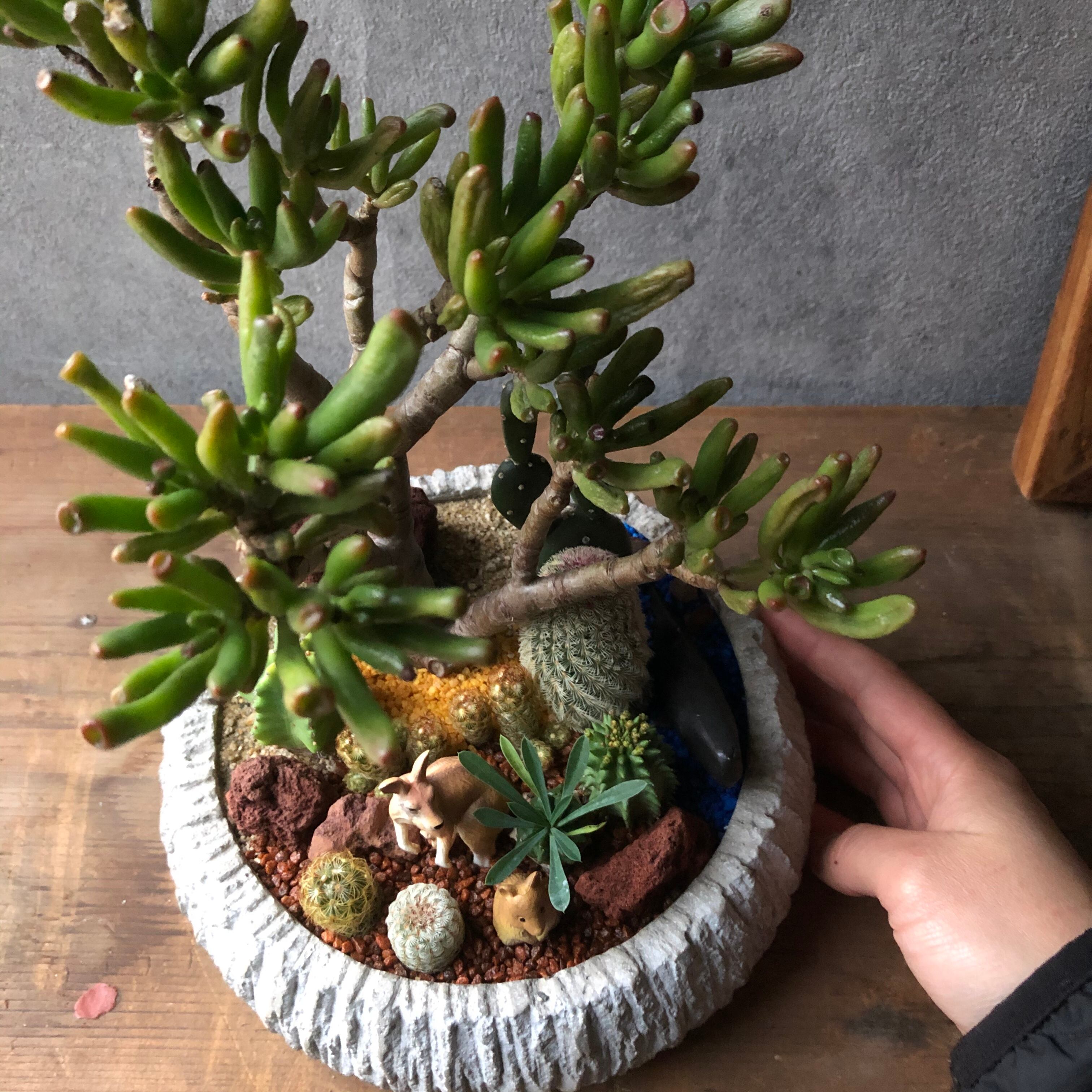 木みたいな背の高い多肉植物ゴーラムをメインに活かして