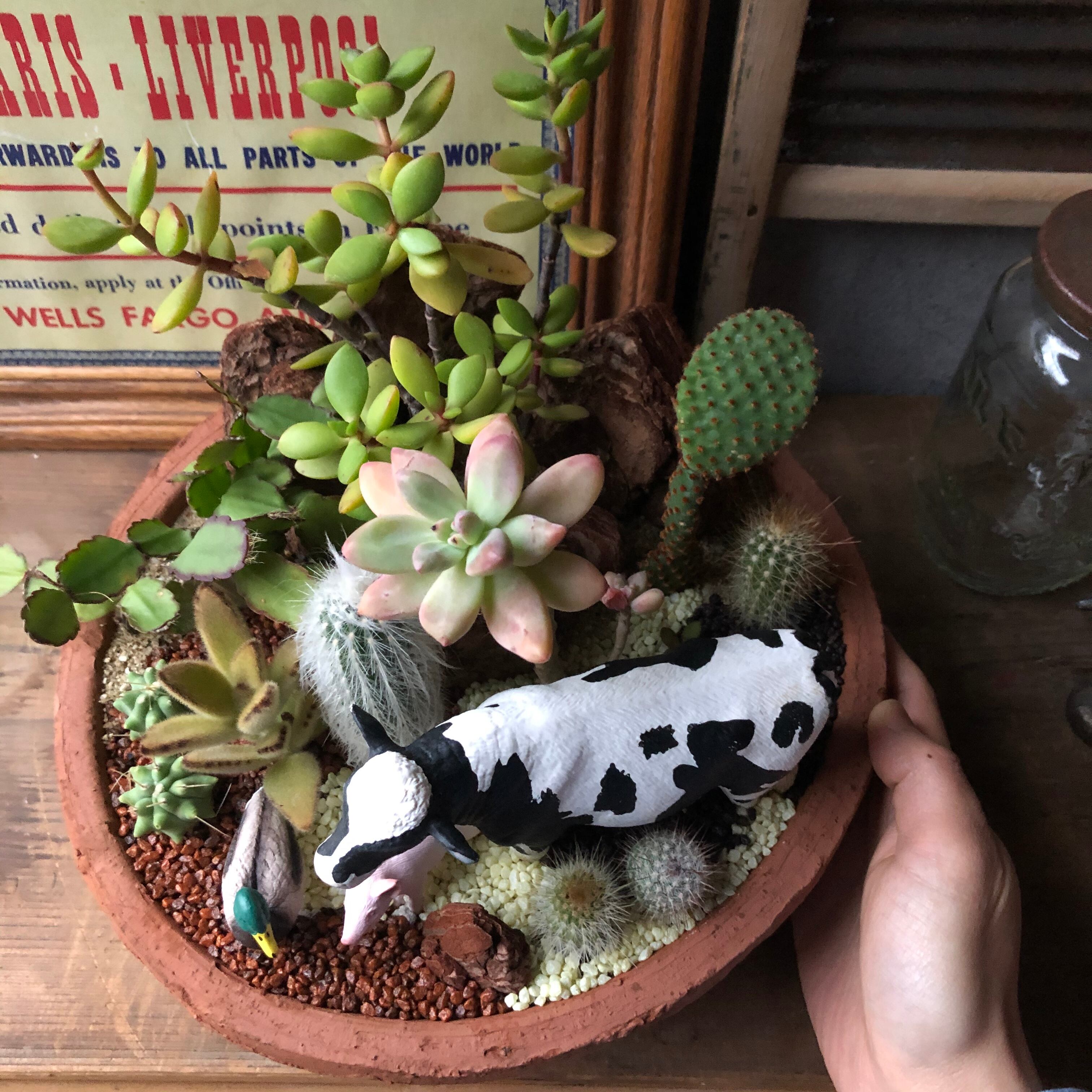 多肉植物メインにサボテンをアクセントに入れてみました^_^