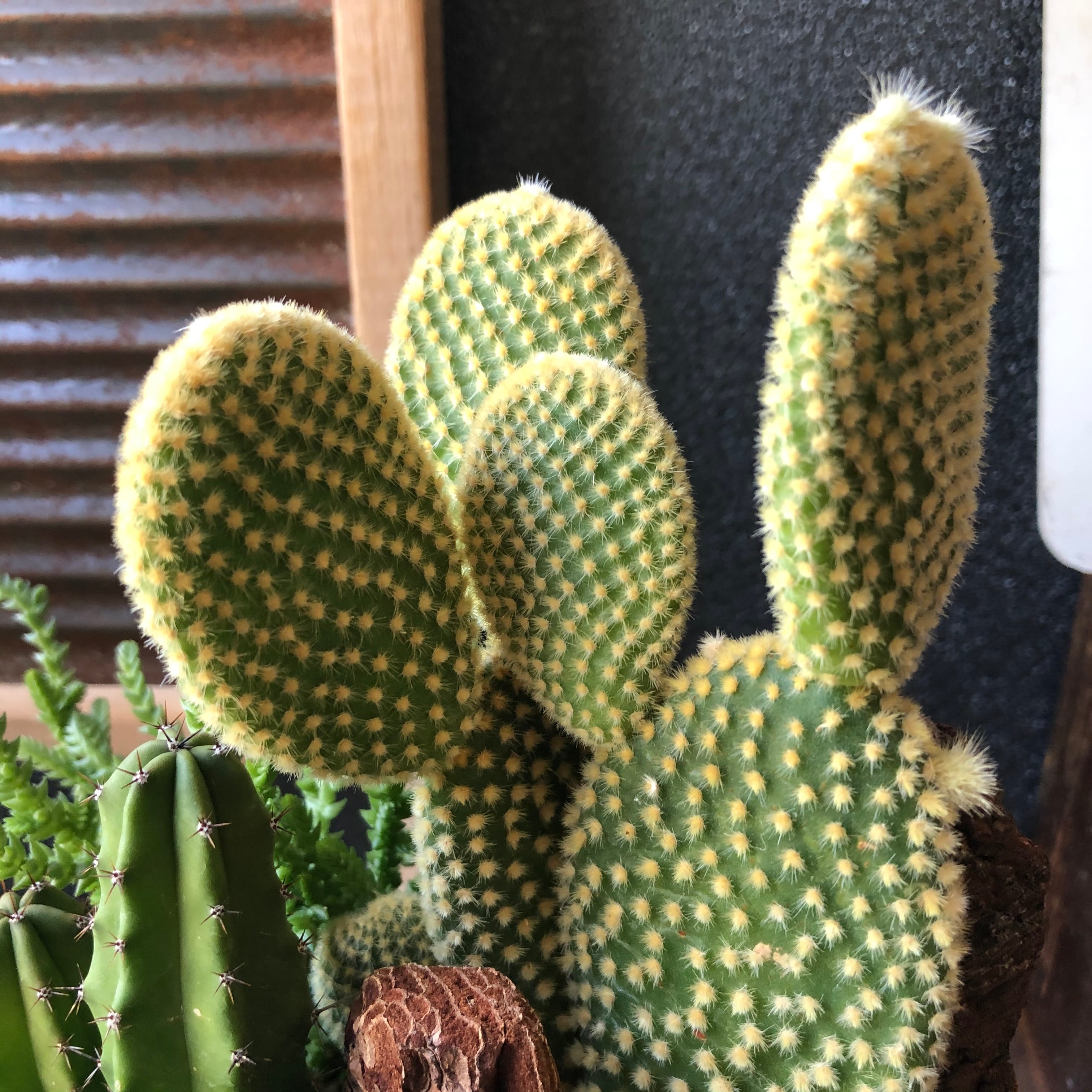 後ろの黄色いバニーカクタス金烏帽子(きんえぼし)は